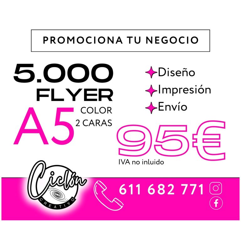 Esto no lo esperabas: 5.000 flyer A5: diseño + impresión + envío... solo 95€. LLámanos, escríbenos, señales de humo... ¡¡Lo que sea!! Pero aprovecha esta oferta y deja huella.