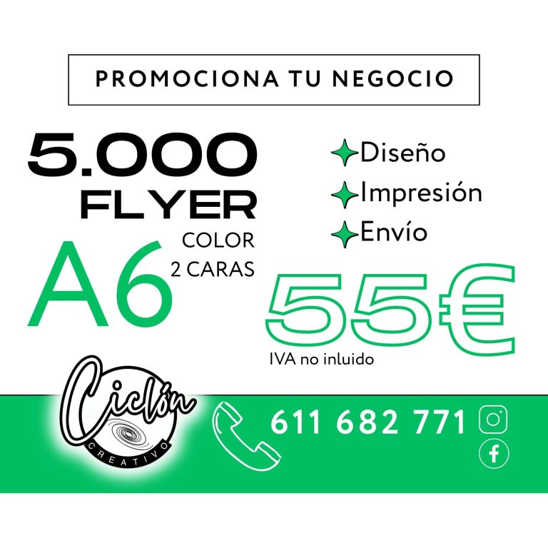 ¿A que no pensabas que por 55€ te hacemos un diseño impactante, te imprimimos 5.000 flyer A6 y te los mandamos donde nos indiques? Pues tal cual, llámanos ahora y... ¡¡nos ponemos con ello!!